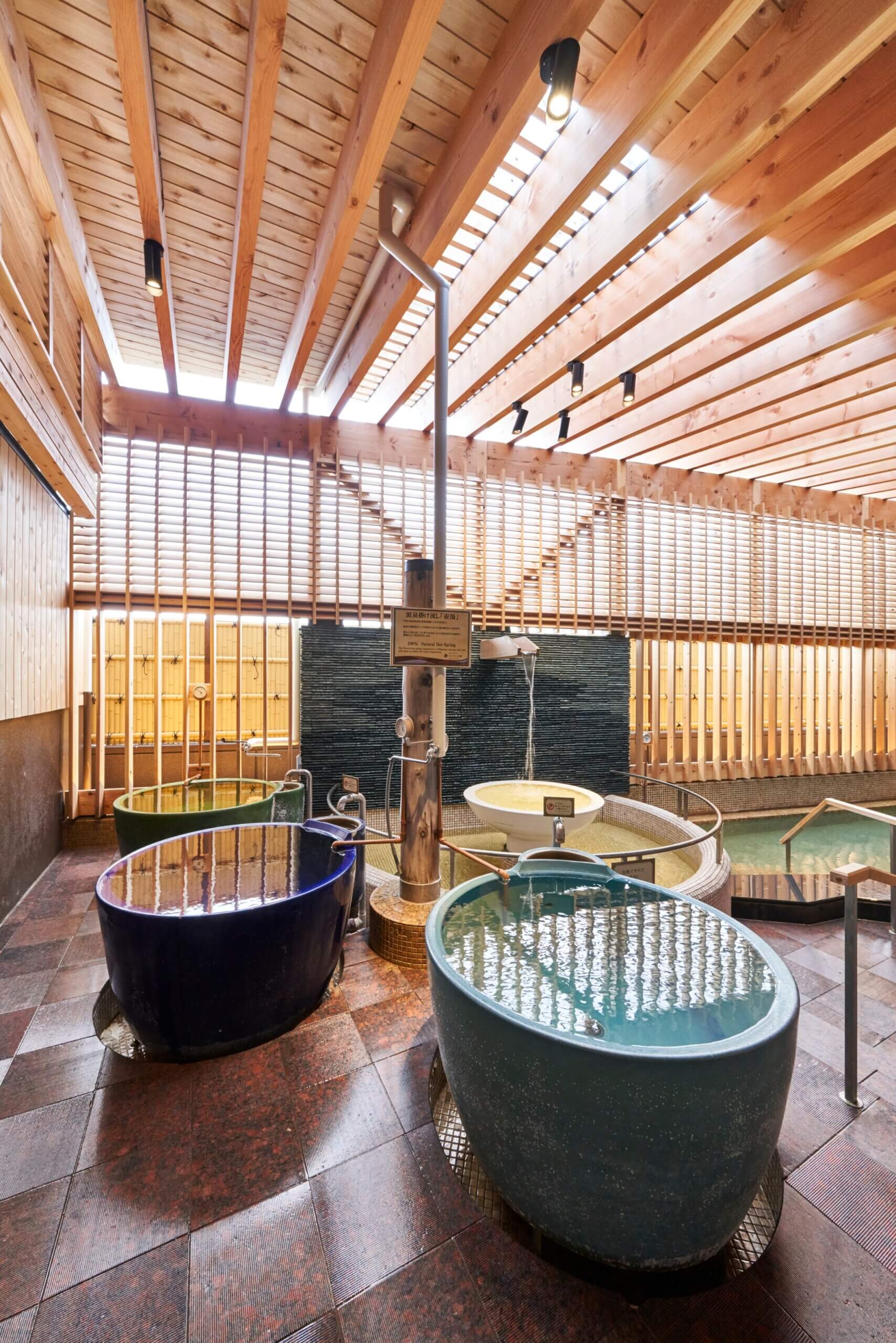 伝統の名泉「湯の川温泉」に浸かるだけでなく、温泉そのものを味わい尽くすための様々なバリエーションの個性的なお風呂やサウナも。
